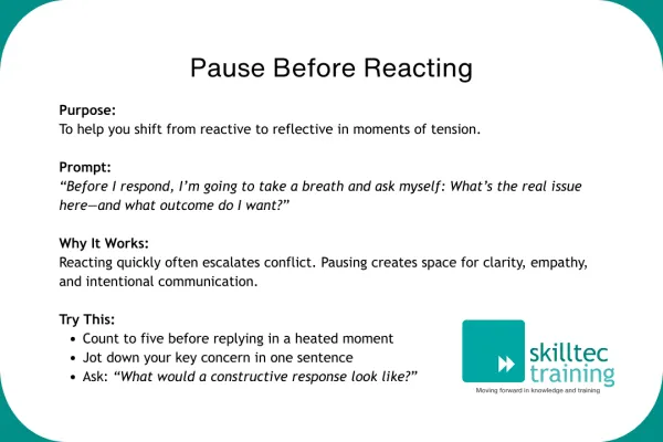 Each card offers a proven strategy, question, or mindset shift to turn tension into understanding - supporting the core principles of our 'Turning Conflict into Connection' webinar."